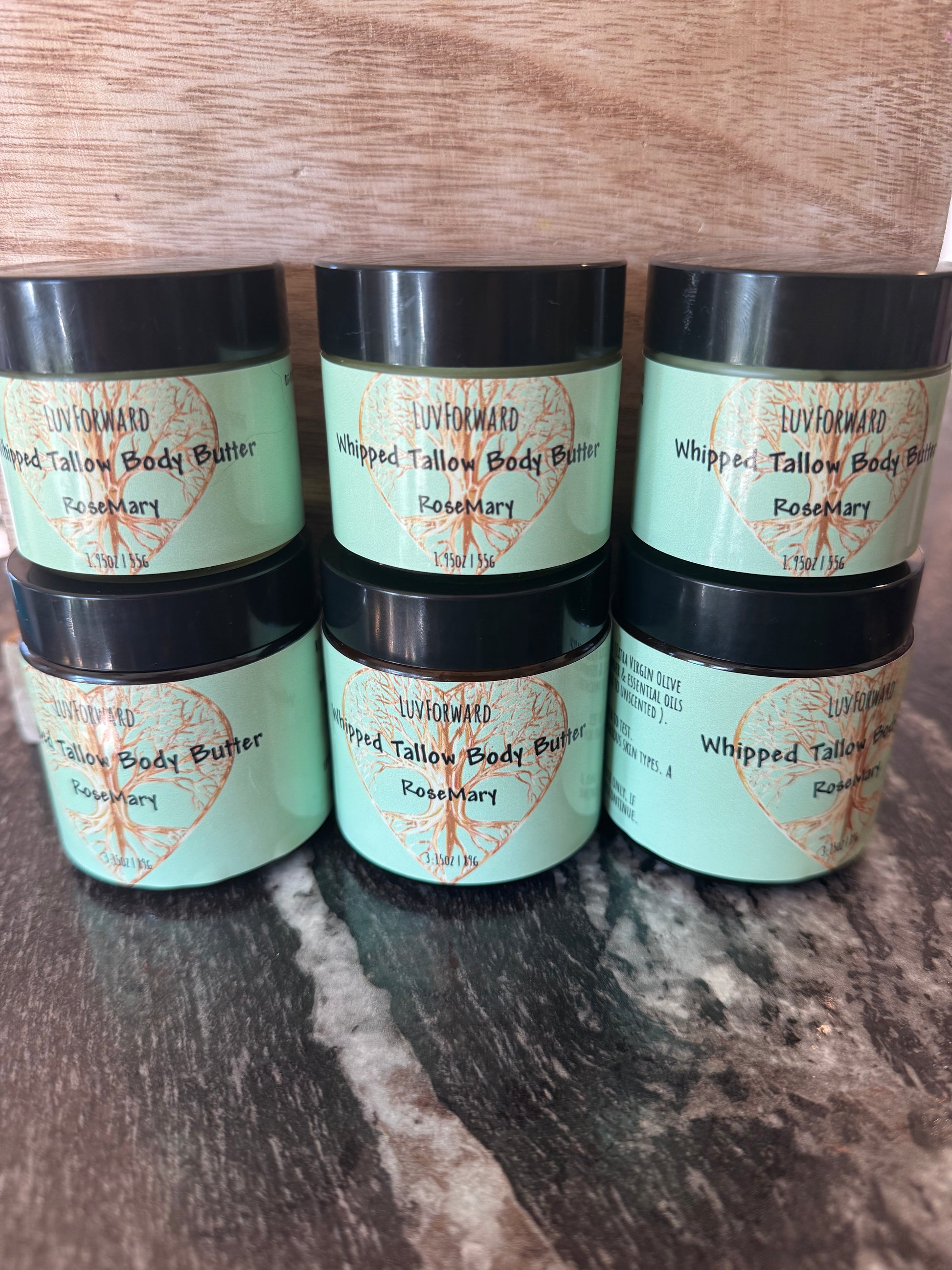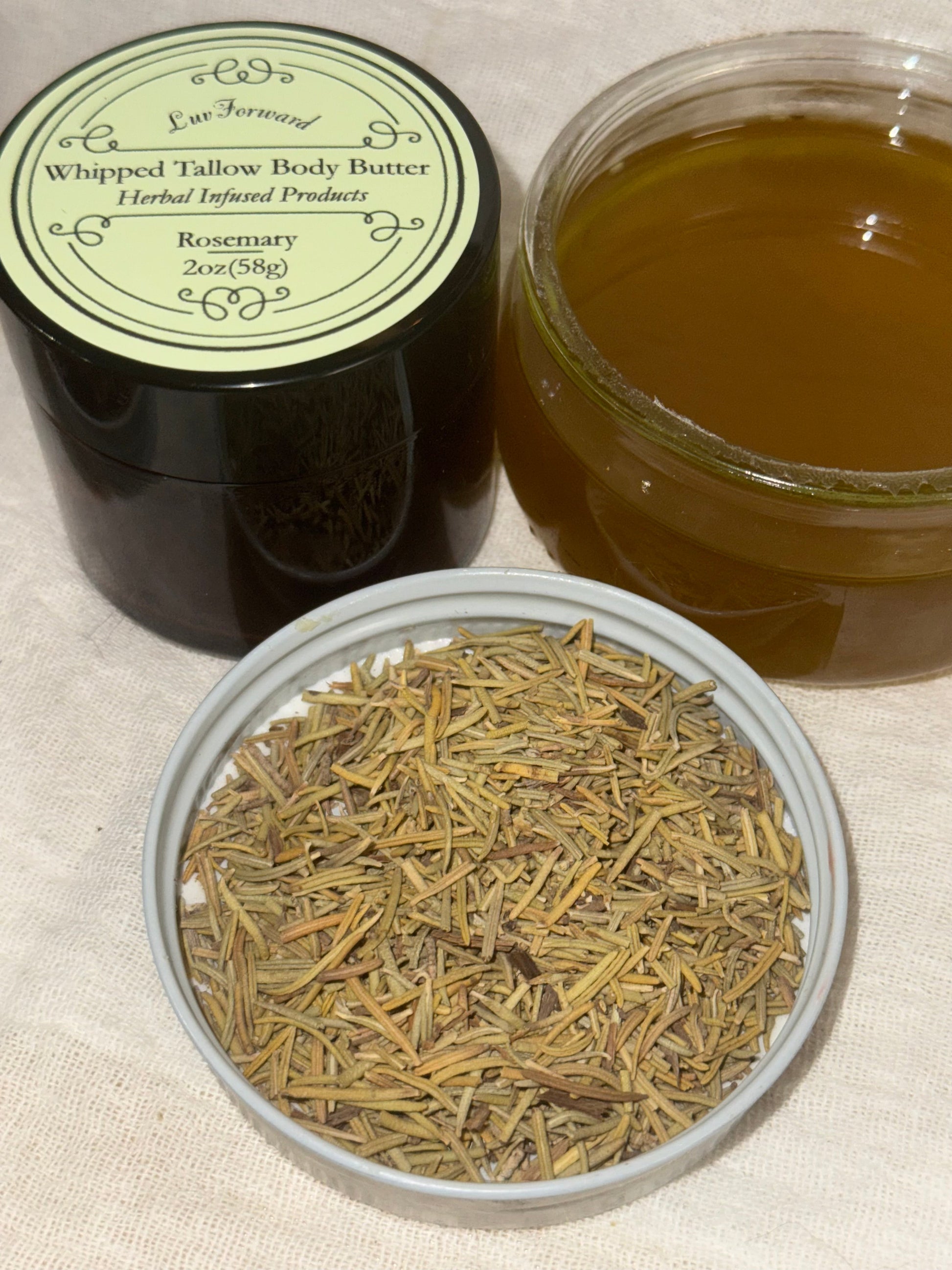 Crafted with care, our Whipped Tallow Body Butter is made using a meticulous process of rendering and infusing organic herbs. It contains natural Vitamin A,D, E &K. Conjugated linoleic acid is also found naturally in tallow balm. This essential fatty acid and antioxidant helps to deeply nourish and plump the skin, boosting blood flow and promoting collagen production. One of the remarkable benefits of tallow balm is its natural anti-inflammatory and anti-bacterial properties. Unlike harsh antibiotics, it won't strip your skin of good bacteria, but rather target the bad while also calming redness, acne, and other inflammation. Our Whipped Tallow Body Butter is a true "superfood" for most people, as it is easier for our skin to recognize and utilize the powerful healing and rejuvenating properties of this product.